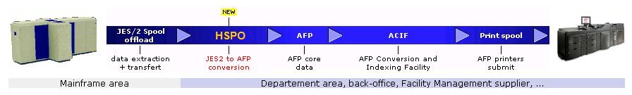 HSPO (HH&S SPool Offload) is a batch utility that processes SPOOL OFFLOAD files coming from MVS/JES2 and split them into homogeneous logical streams (text lines, pure AFP) to be processed on a print subsystem (ACIF).This utility runs on PC/mid-range open systems having their own AFP print controler.